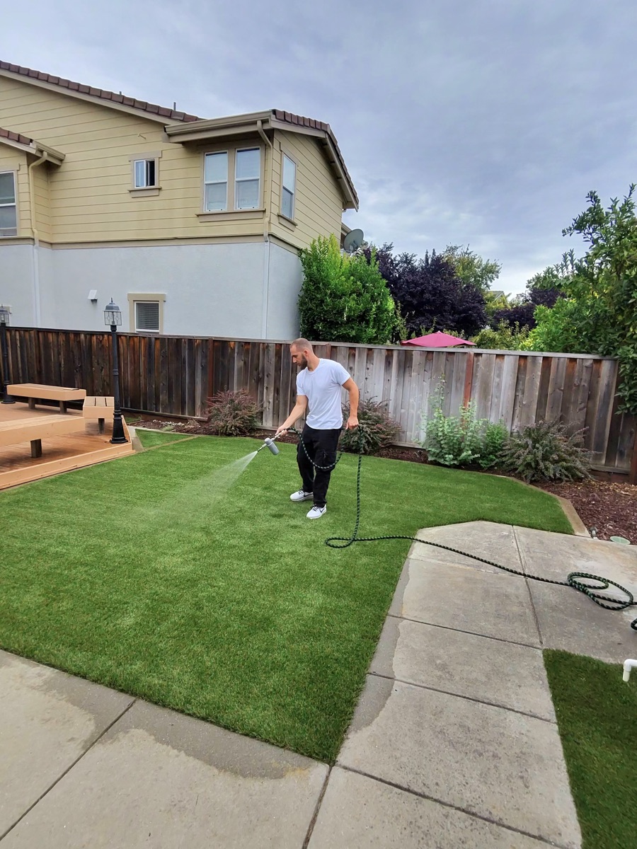 Our pet-safe sanitization process targets bacteria at the infill layer to freshen your turf surface without harsh chemicals.